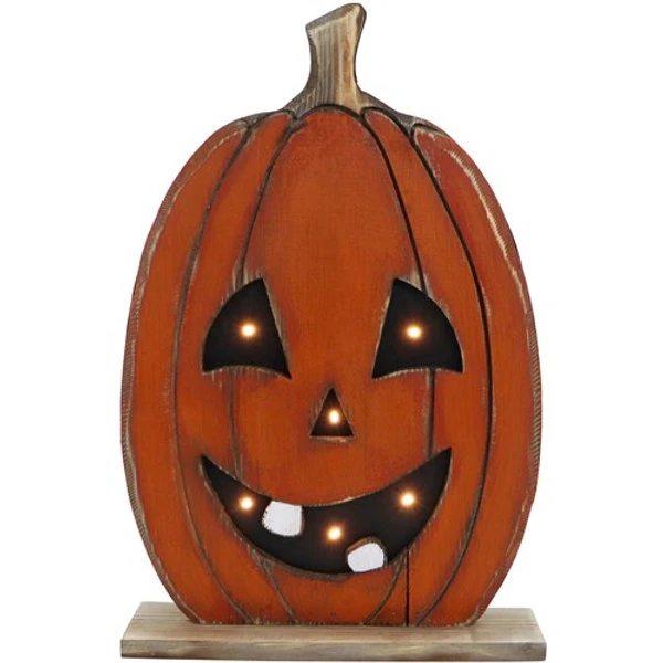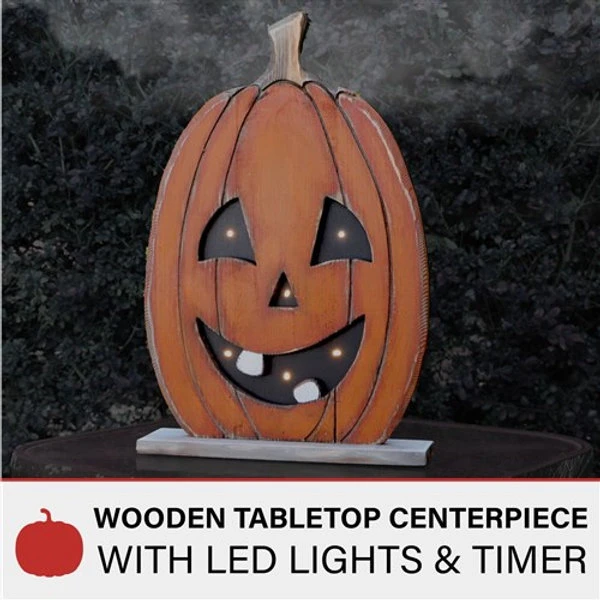 - Tall light-up wooden pumpkin makes the perfect Halloween centerpiece or nightlight