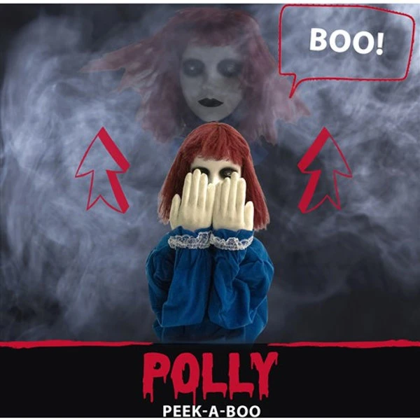 - 27-inch animatronic pop-up haunted doll for indoor and covered outdoor display