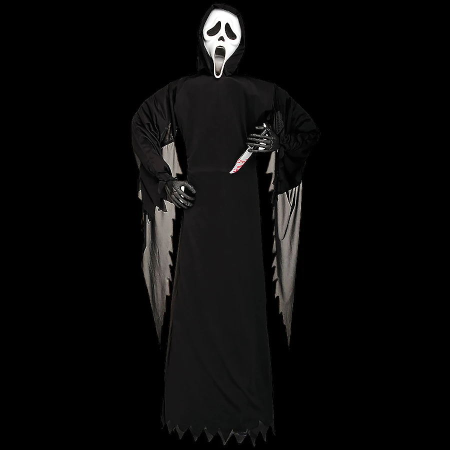 - 9″ long plastic knife is attached to figure’s hand with a zip-tie
