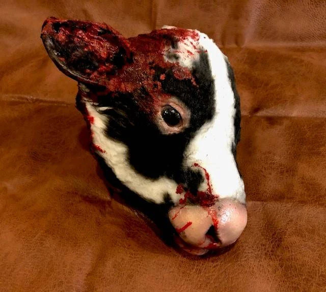 Realistic Life Size Calf head. Fabricated with a poly foam core and fur for years of use. Each head comes with unique ear tag number and custom paint/ marking