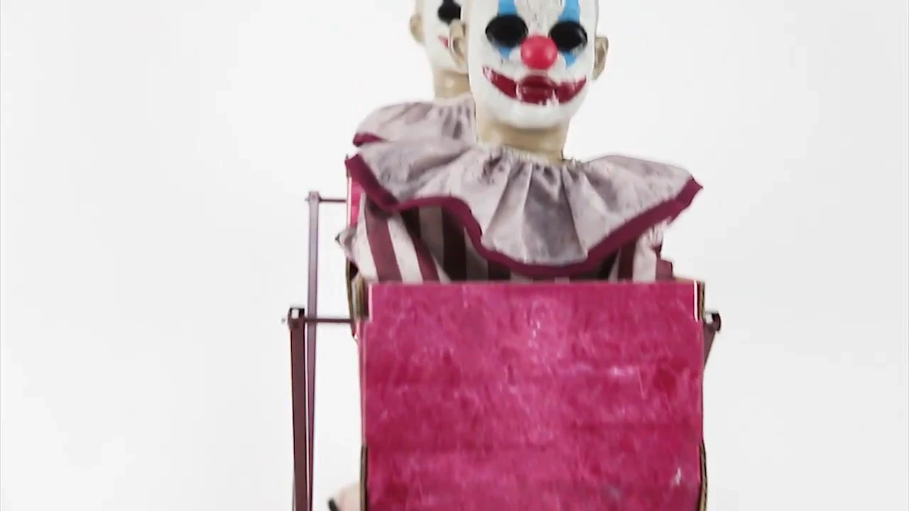 Everybody’s favorite ride at the carnival! The Animated 72-inch Ferris Wheel Prop is re-imagined with 5 creepy little clowns riding around and around for all eternity. Each clown is unique. Eerie carnival calliope music plays while the Ferris Wheel from Fun Land creaks and echoing childish screams and laughter is heard in the background. Plug the UL power adapter into any standard outlet and choose from Steady-On, Infra-Red Sensor, or Step-Here Pad (included) activation options. The infra-red sensor works up to 6.5 feet away and works in all lighting conditions – bright light to no light! Item includes Volume Control. Easy-to-assemble quick-connect poles.