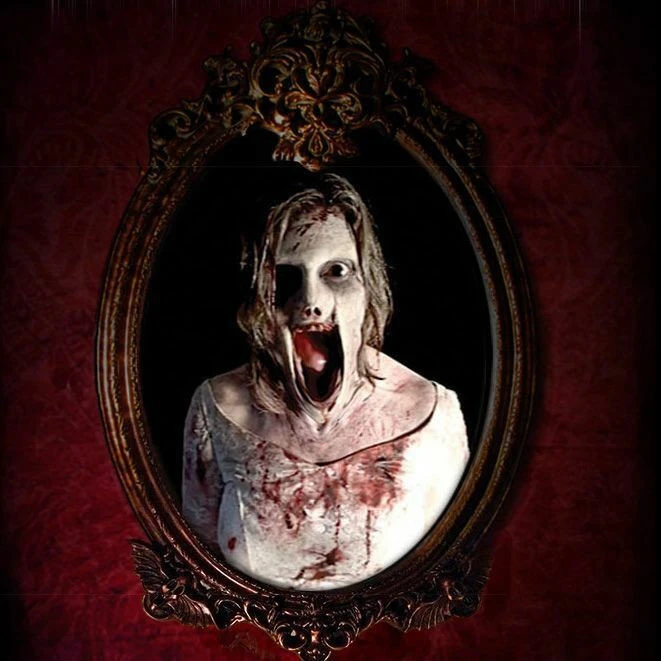 terrify your unsuspecting guests with the hottest prop to hit the haunt market! This beautiful ornate mirror easily serves as the center piece in any haunted house setting and appears to be innocent enough, until the mirror’s reflection suddenly transforms into a truly terrifying spectacle, guaranteed to make your visitors jump out of their skin in horror. stealthily hidden behind the precisely formulated 2-way mirrored surface is an lcd video screen, ready for playback of any of our expanding library of routines: from sudden horrifying startles for use in key areas of your haunt, to longer format routines designed to entertain your guests while they wait in the queue line or to set up the back story for your attraction. The screen mounts easily to the wall using the included ultra-low profile wall mount. No false wall construction necessary.