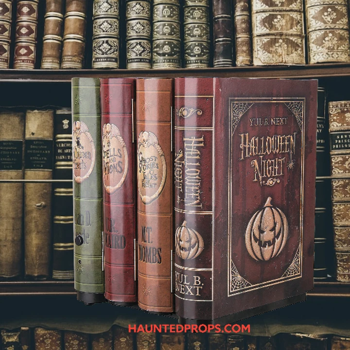 Just tuck these into your bookshelf and watch your guests jump when they pass by and the books start moving and making eerie sounds! The books slide in and out on their own and are motion-activated. Great addition to your haunted setting! Clever funny author’s names include Yul B. Next M.T. Toombs and more! Requires 4 AA batteries not included. Made of Paper,50%; Plastic,40%; Metal,5%; Electronics,5%. Measures approximately 8 inches tall, 6 inches wide, and 7 inches deep.