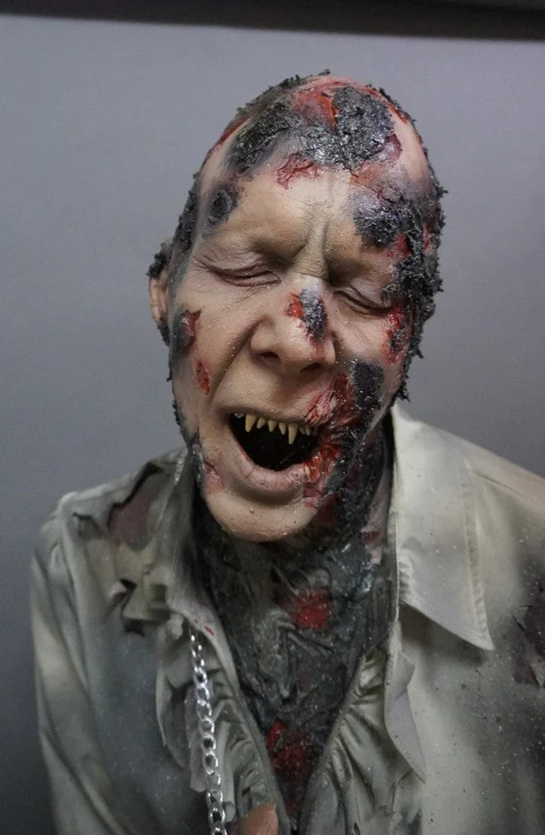 Vampires can be burned with sunlight and silver as well as fire. Poor Bernie is is chained up and burning to a crisp.