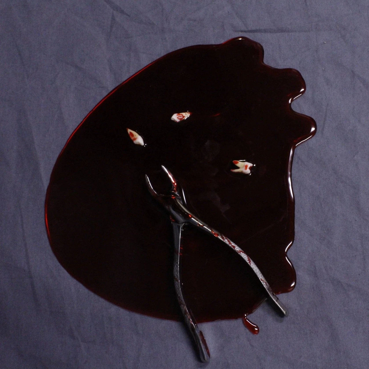 Perfect for dental or crime scenes. Our resin blood pool with replica teeth. Dimensions: 10″ x 7″