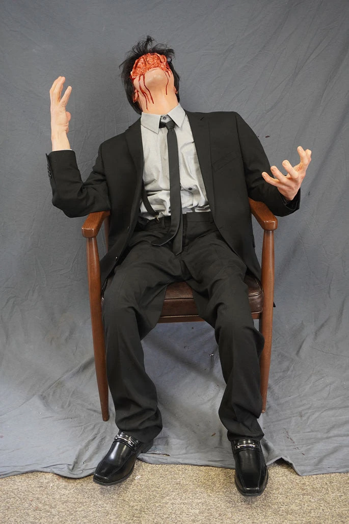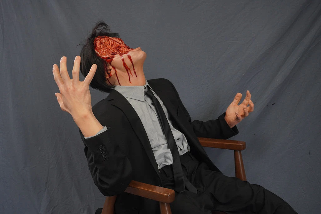 Poseable dummy body with extreme gore Chasm Clark head and lifecast hands.Â
