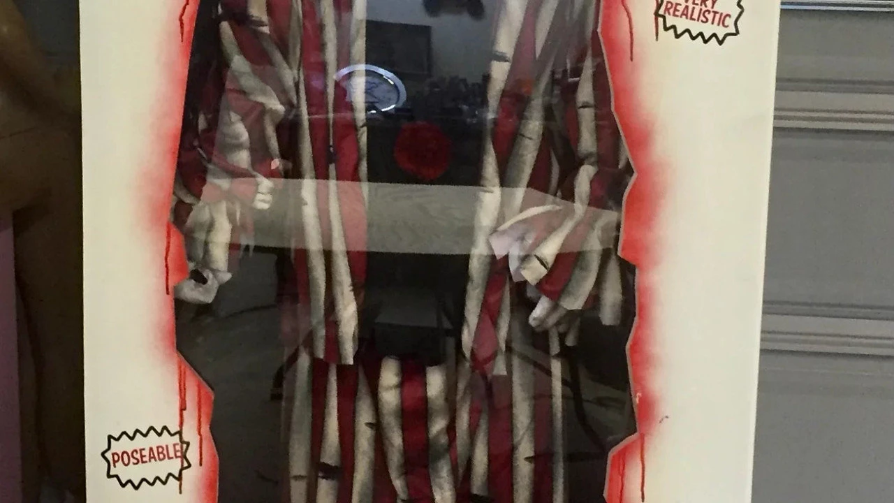 When the actor in the box triggers the prop, door flys open, actor runs out to scare sounds and a blast from an scare horn. Comes with sound, trigger, computer, & costume.