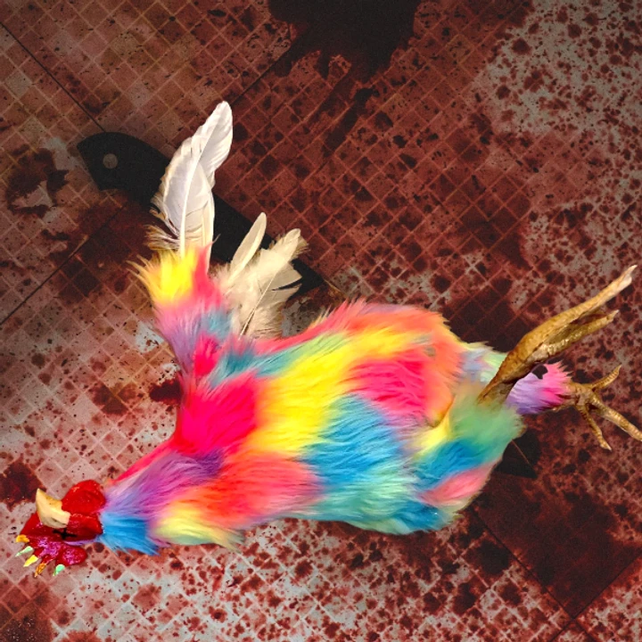 This highly colored chicken prop is not only colorful but loud!!!!!