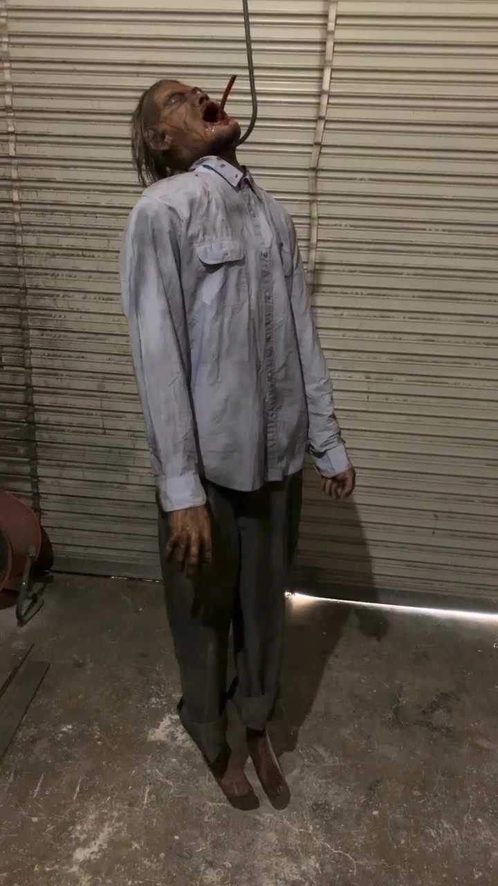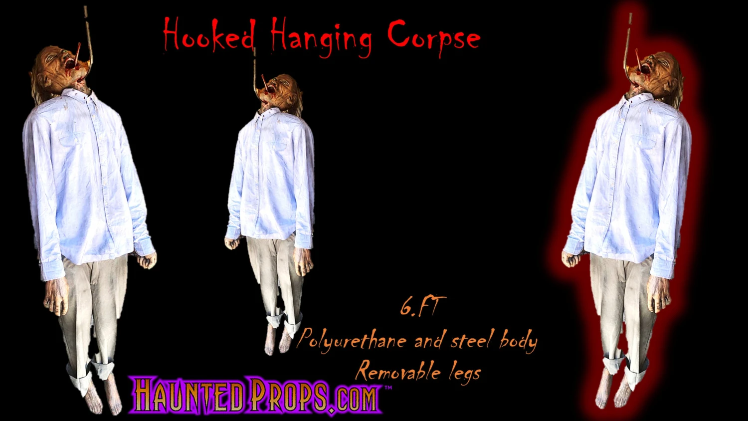 Dead Man Rockin’ is a shaking hanging corpse prop. A truly impressive Frightronic piece. This life-size corpse hangs from the included hook and twitches around. All electric; just plug it in and he starts shaking. Includes link to download Frightronic audio track.
