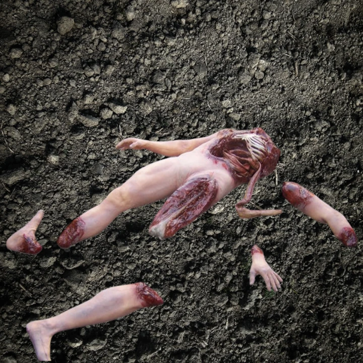 Dismembered corpse as well as intestines and four severed limbs for that complete dismembered look.