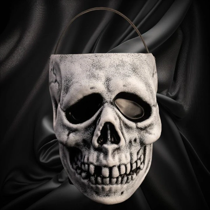 Crafted from durable blow mold plastic, this 9″ tall candy pail brings the classic Don Post Skull Mask to life in retro style. This candy pail features painted details and a flexible plastic handle making it perfect for trick or treating.