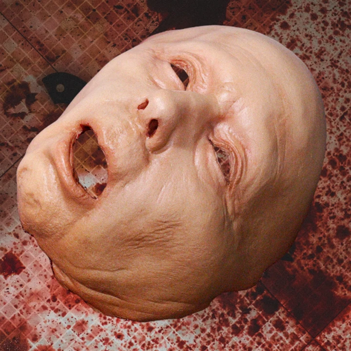 Gory peeled Edith face skin prop made of durable urethane rubber.
