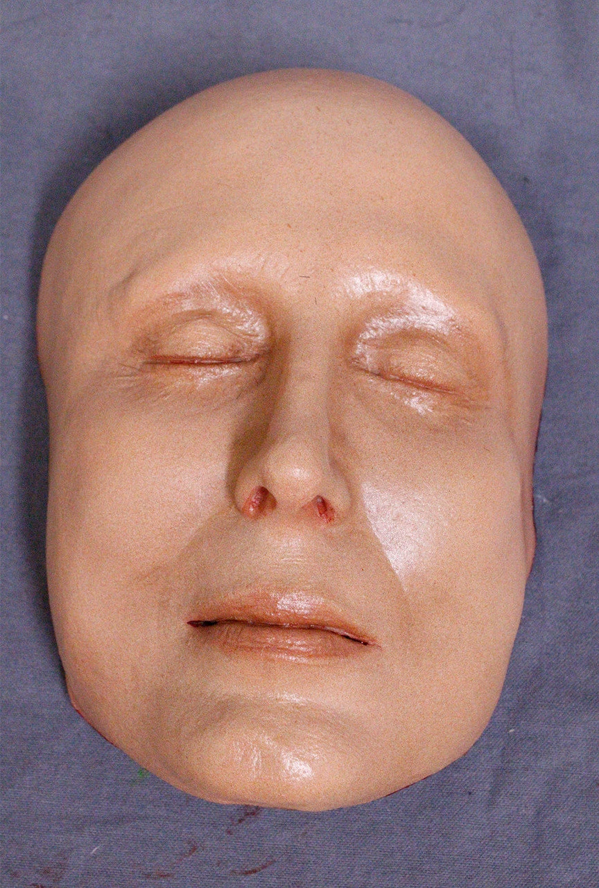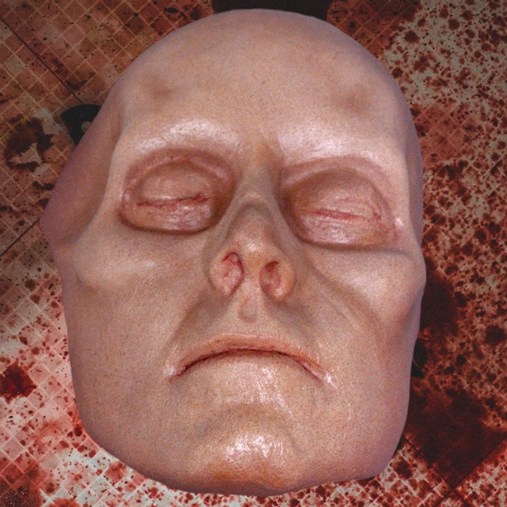 Gory peeled Judith face skin prop made of durable urethane rubber.