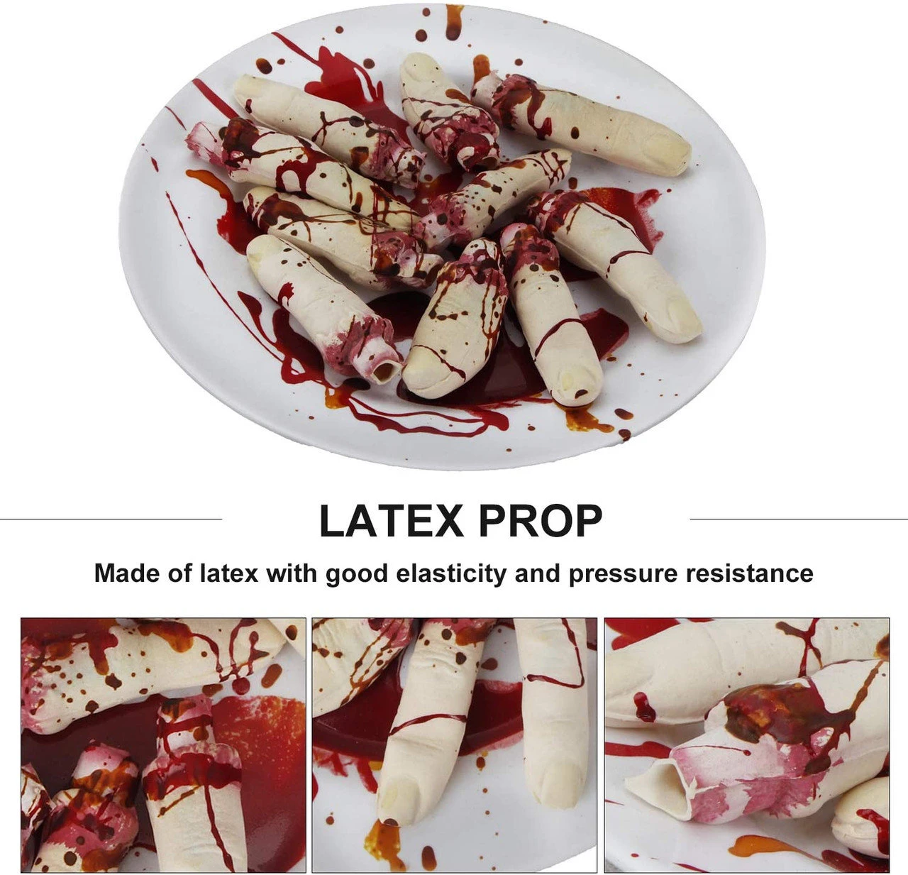 - All the products are made of high-quality 100% natural environmental silicone. Non-toxic, non-dissemination of odor, water-proof insulation, and a very natural realistic and easy to clean. Great for indoor and outdoor use, For a terrifyingly unforgettable Halloween party, use this gory zombie severed hand prop.