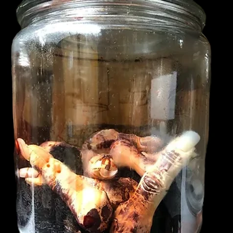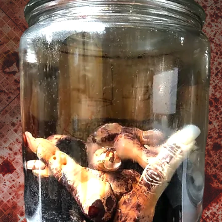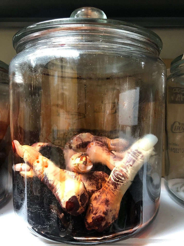 10 BLOODY FINGERS IN A 1 GALLON GLASS BLOODY SPECIMAN JAR