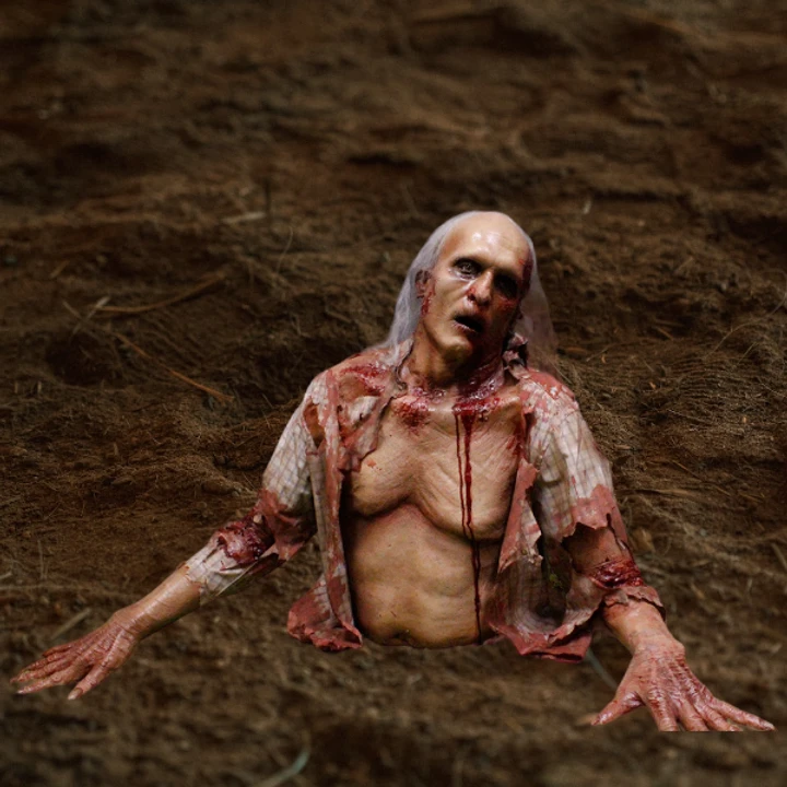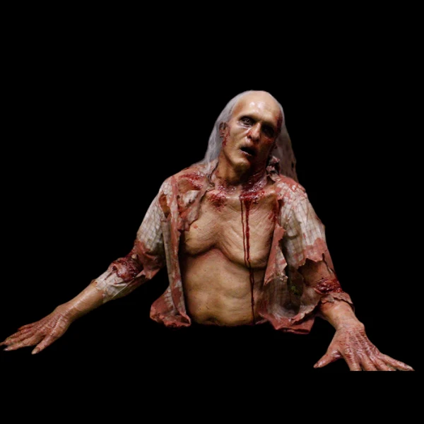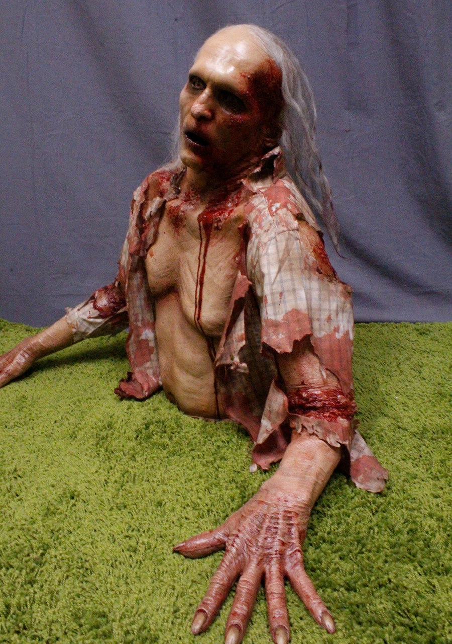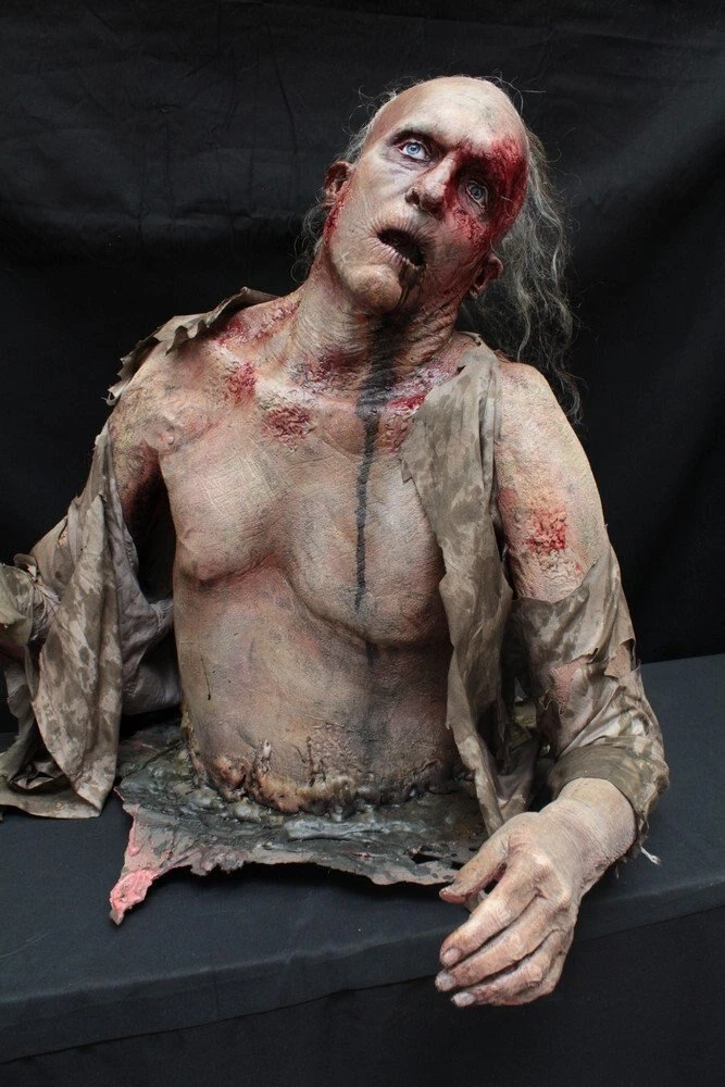zombie torso will look great on your lawn! includes heavy duty metal stand. 360 polyurethane prop.
