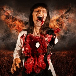Heartless static horror prop. Shocking realism! Our Heartless prop is a life sized, kneeling, bloody woman, with a gaping hole in her chest! This bloody prop is perfect for haunted houses, horror fans, Halloween decorating, and home haunters. Constructed of latex and foam with a metal armature.
