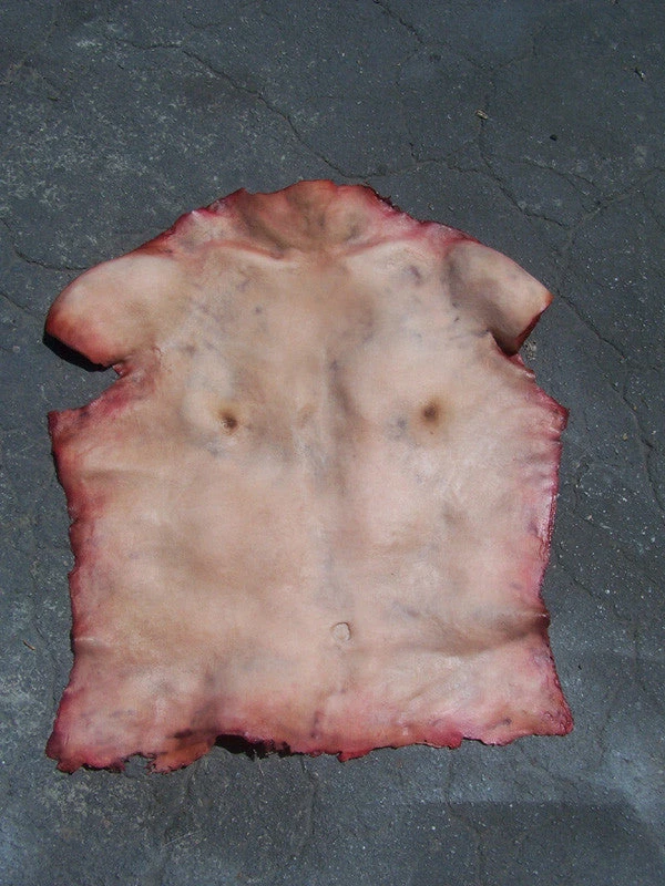 This sheet of “human skin” is made from polyurethane rubber and is about 18 inches wide by 22 inches long. Chain hanging armature optional.