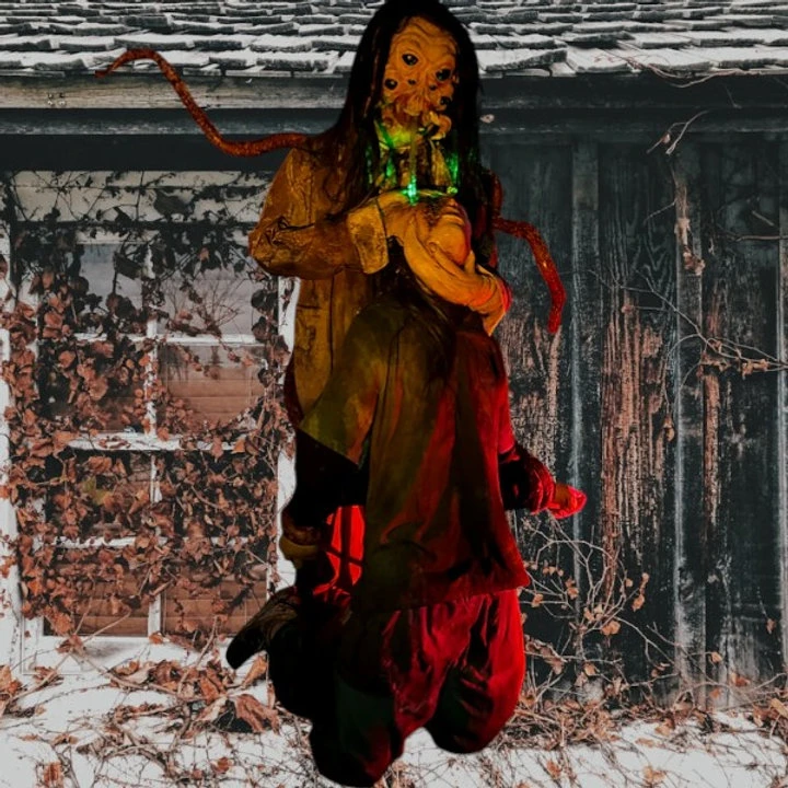 Insect Puker creature vomits green tinted water into his victims eye; he stands are approximately 6 feet tall with 4 flexible tentacles; both bodies are made out of a durable latex. Props are easy to assembly and come with pond and bucket for water feature.