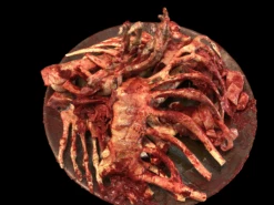 This gory party platter is a great addition to your haunt ,escape room, or film set. Very durable and highly detailed this platter  will turn some stomachs. Platters are about 15 inches . Allow 2 to 3 weeks for production .