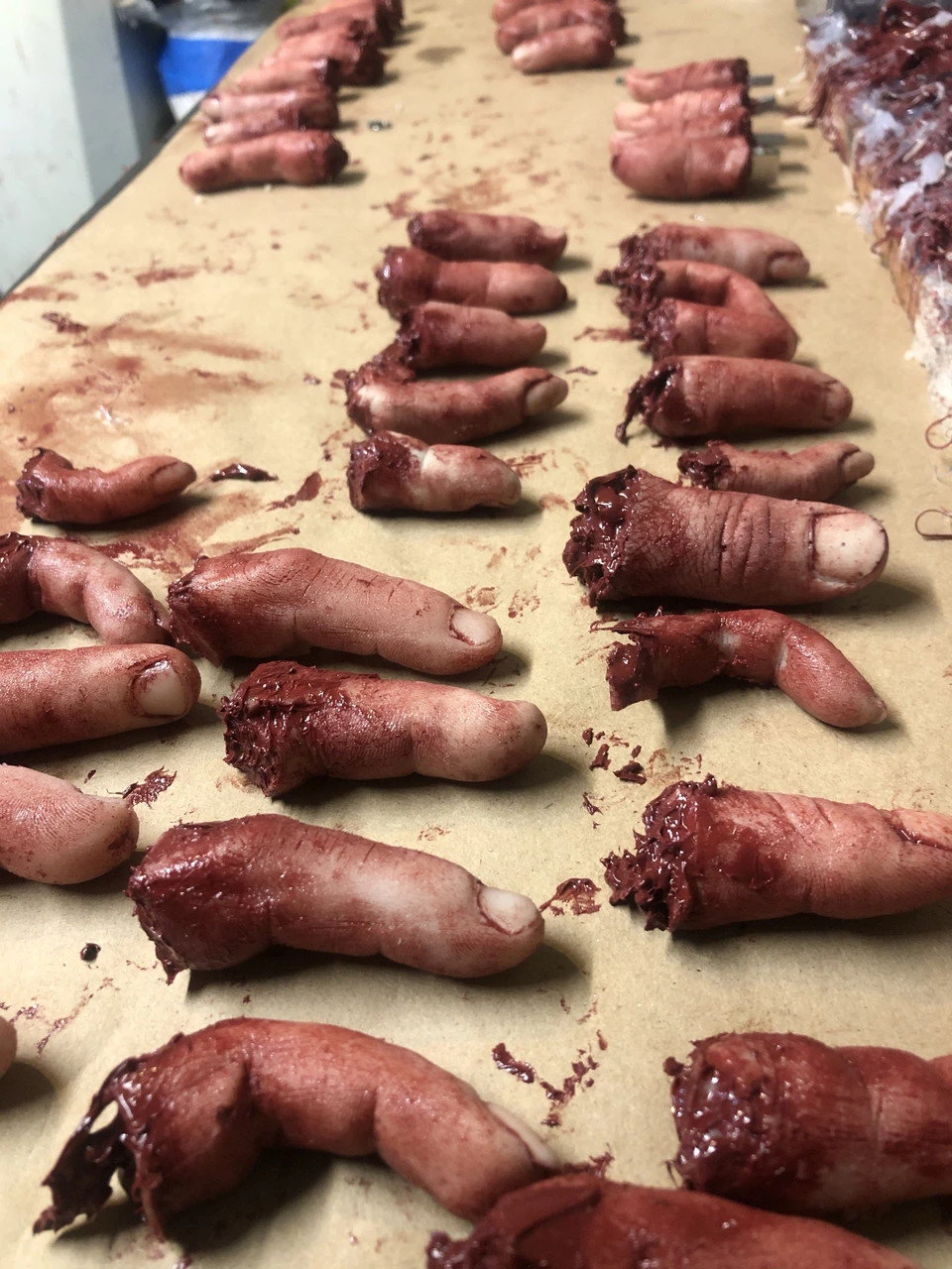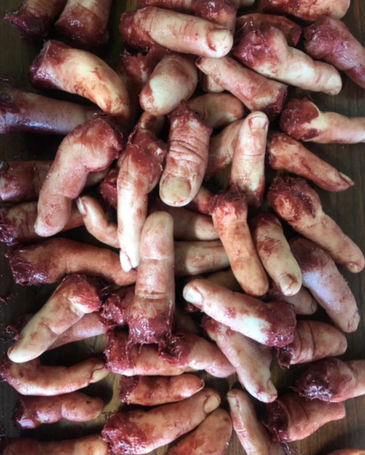 This lot of 100 silicone fingers is the best value you can get. Each finger individually painted and scarred. Lot includes female, male and child fingers.