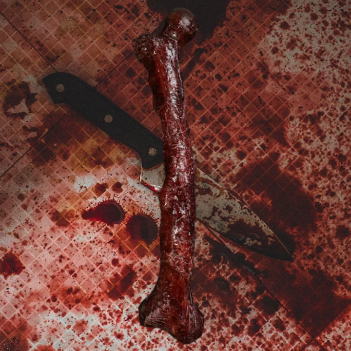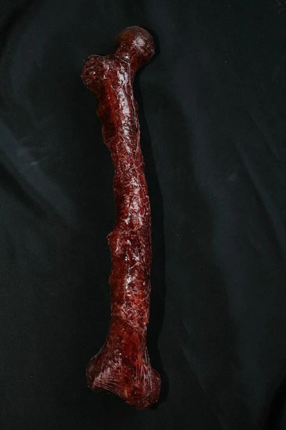 Tired of replica femurs stripped of their delicious replica meat? Then this piece is for you. One life sized human femur covered in lifelike human meat. Perfect for man eating animals and man eating cannibals.