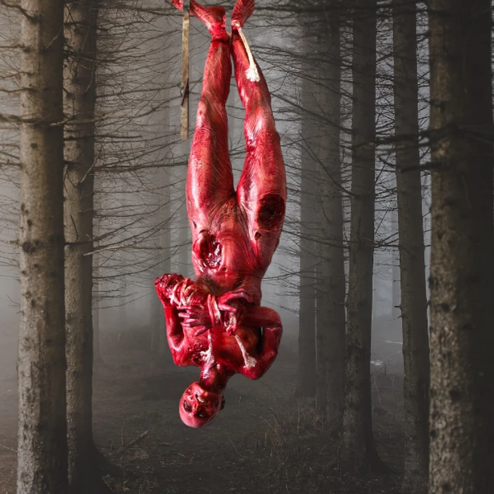 Full sized skinned female body with rope and armature for hanging.