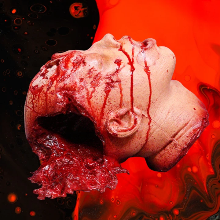 Lifecast urethane rubber head with realistic wounds and gore.