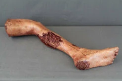 Full length life cast Hugo leg painted bloody with a variety of wounds and cuts. Left Leg only.