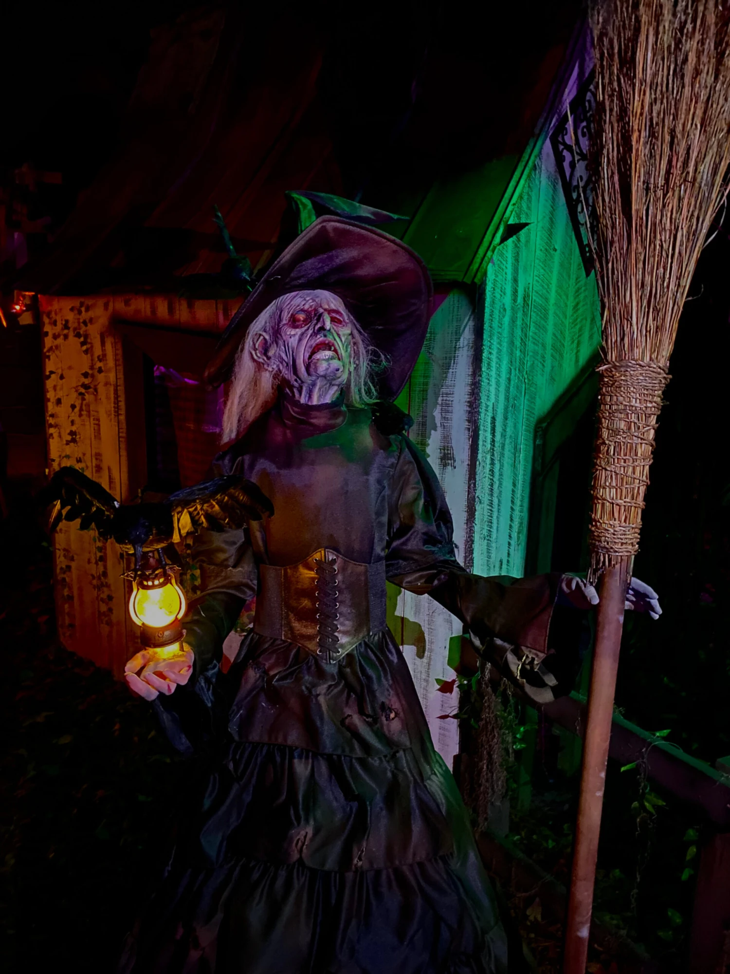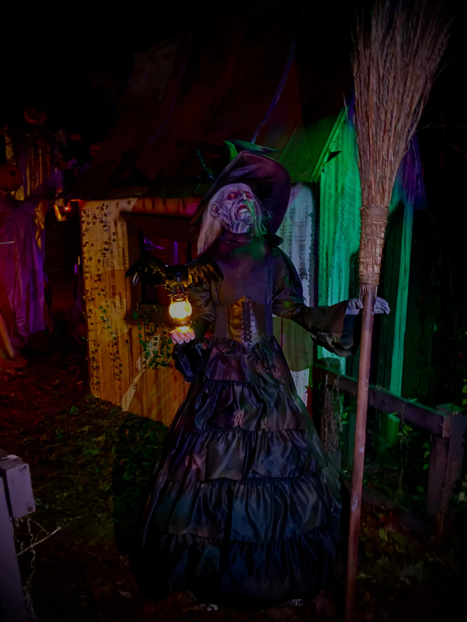 Comes apart at waist ! The witch comes with broom ravens and light ! Â