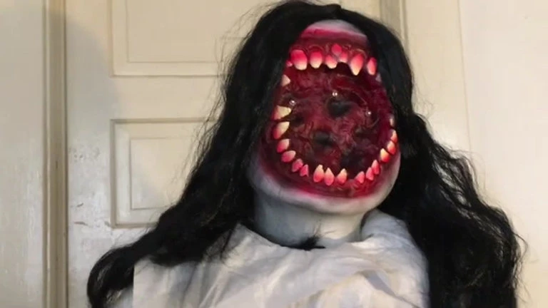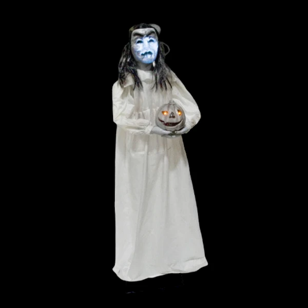 You’ll have the creepiest house in the neighborhood when you put the Scary Girl Prop – Vintage Look on your lawn this year! This spooky prop features a young girl in a white gown holding a pale white pumpkin which glows The girl turns left to right and her 2018 Halloween Masks is removable revealing a giant mouthful of terrifying teeth! When the trick or treaters take one look at this freaky prop they’re going to run away in fright.