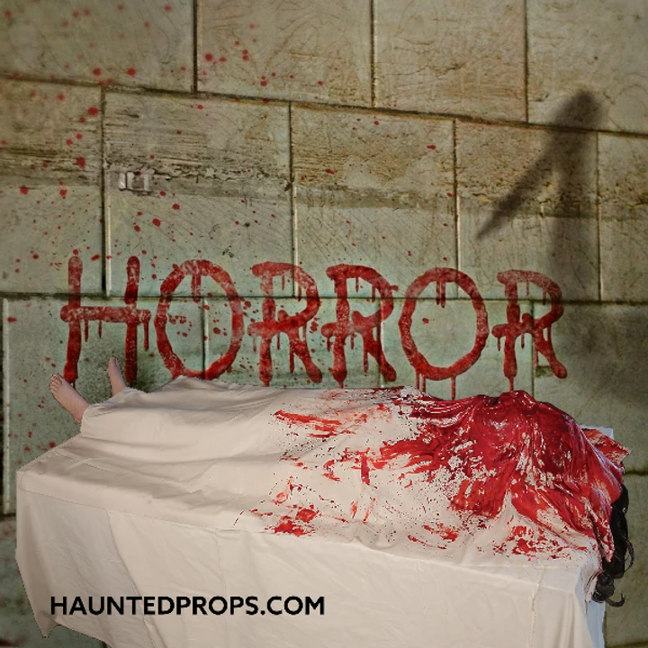 Something’s moving in the morgue!, Life size body shakes under the ‘bloody’ sheet as she groans and moans. Table is not included. Includes Soundtrack on CD to play in your CD player. Costuming may vary. Latex and foam with metal armature and motor. Requires AC Power to operate.