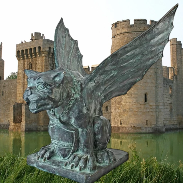 This broad-shouldered gargoyle statue is a fierce sentry for your front gate, grounds, or hearth. This high quality bronze, statue boasts an appealing, wrinkled face and elongated toes, sure to bring your home or garden to life with its realism. This heavyweight bronze gargoyle sculpture, finished with an antique verdigris patina, is cast one piece at a time in the traditional lost wax method, which highlights the exceptionally fine detail and guarantees lasting beauty. Sure to be a focal point and even more striking as a pair flanking your entryway!