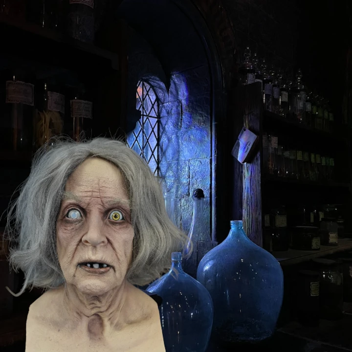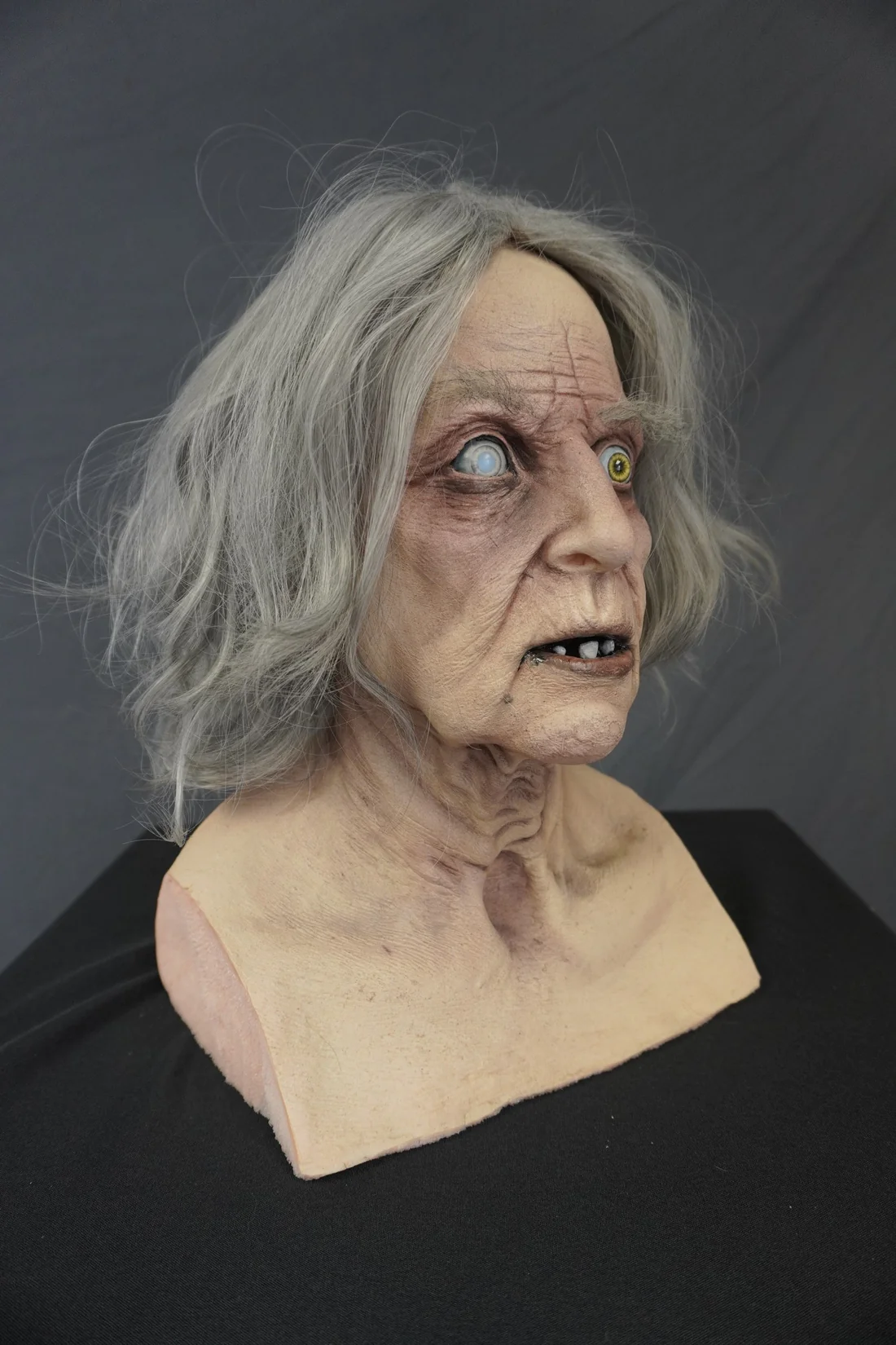 High detail, lifesize, urethane foam rubber sculpt of a witch with large protruding ears.